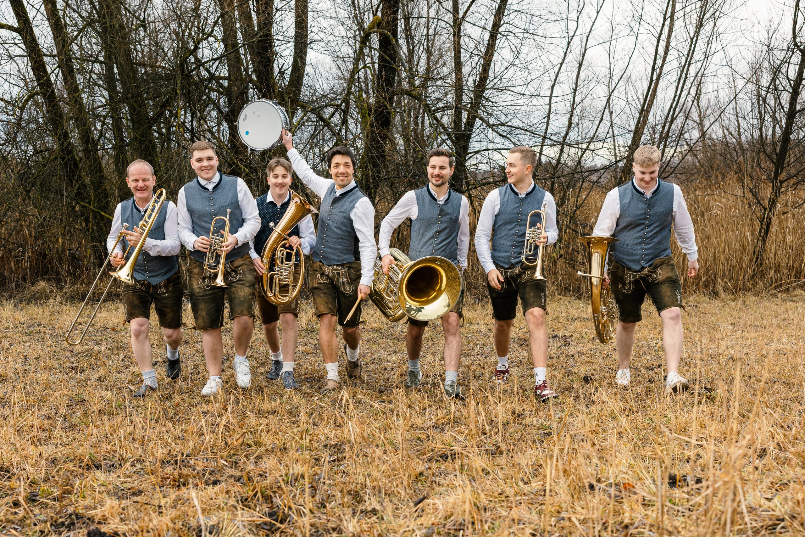 Mit unserer musikalischen Vielfalt und der spürbaren Freude auf der Bühne bringen wir frischen Wind in die Blasmusik – ausgfuxt, eingespielt und mit einem Augenzwinkern.