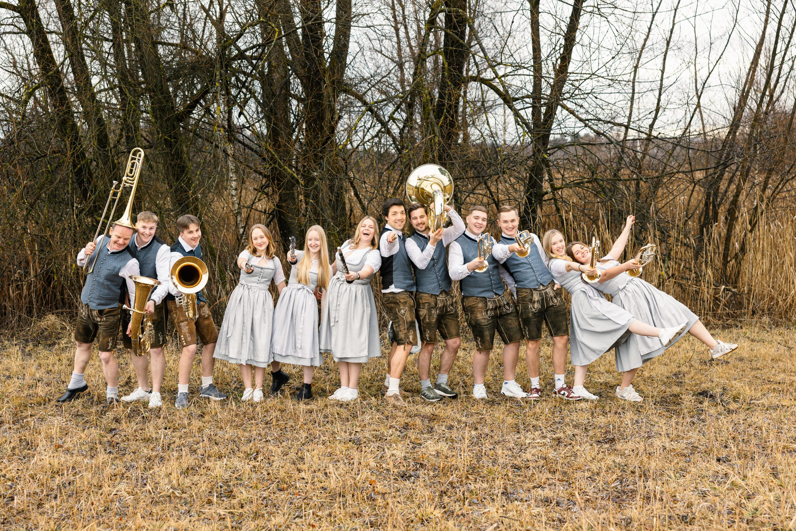 Wir sind d’Ausgfuxtn – eine junge, motivierte Truppe aus Braunau in Oberösterreich, die mit ordentlich Schmäh und jeder Menge Leidenschaft Musik macht. Seit 2023 stehen wir unter diesem Namen gemeinsam auf der Bühne – musiziert haben wir allerdings schon viele Jahre davor miteinander. Was uns verbindet? Die Liebe zur Blasmusik und der Spaß am gemeinsamen Aufspielen.